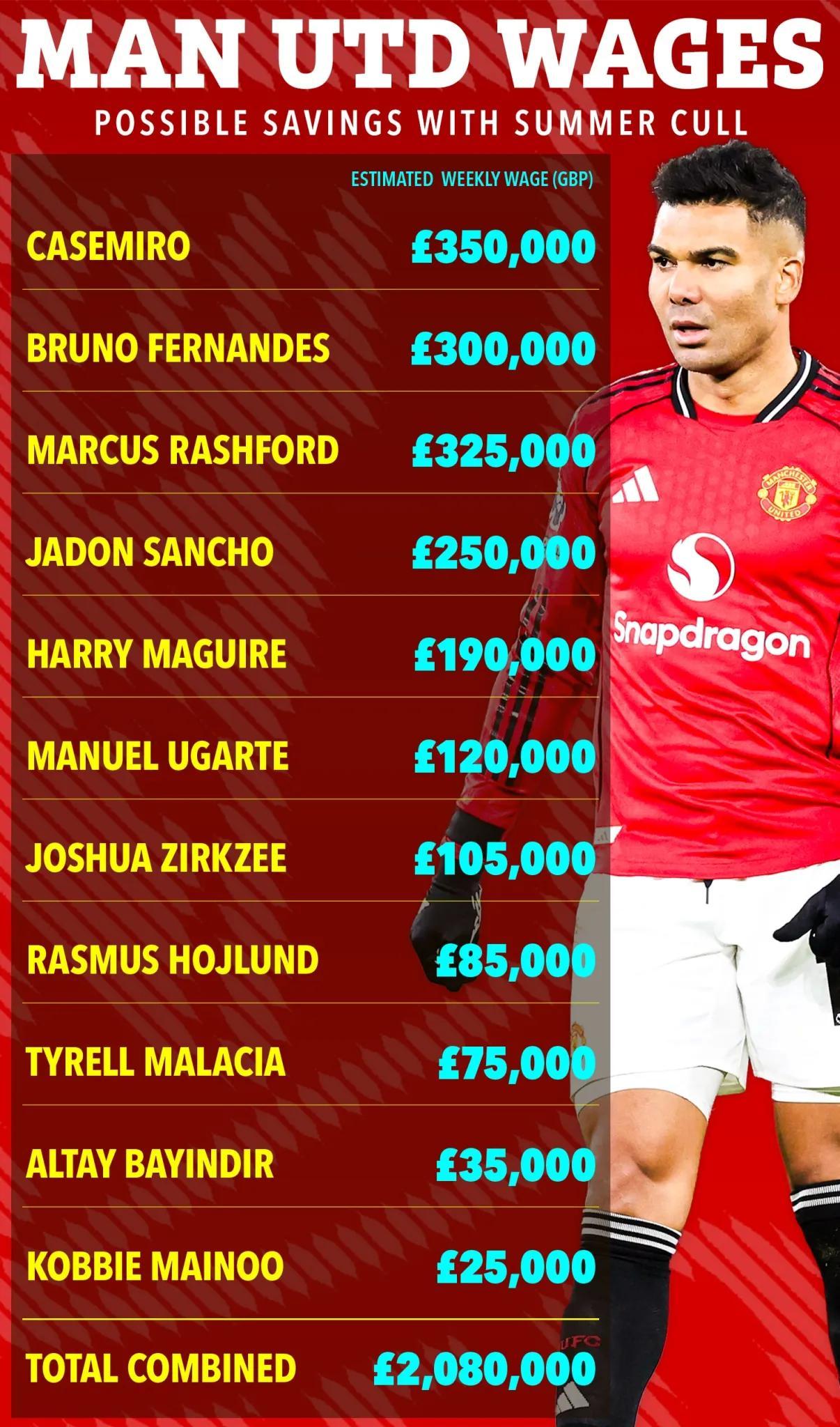 俱樂部希望大幅削減薪資支出,此次陣容清理可能每週節省210萬英鎊。