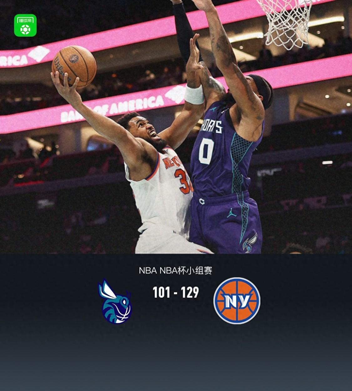 北京時間11月27日NBA NBA杯小組賽,夏洛特黃蜂對陣紐約尼克斯。半場黃蜂47-72尼克斯,最終黃蜂101-129尼克斯。
