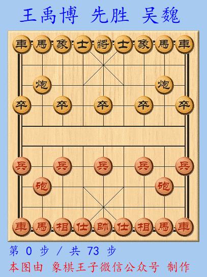 王禹博化解黑棋攻勢下來,紅一兵直衝下去,卡住黑4路將門,黑側翼無守,是以73手,紅當即致勝。