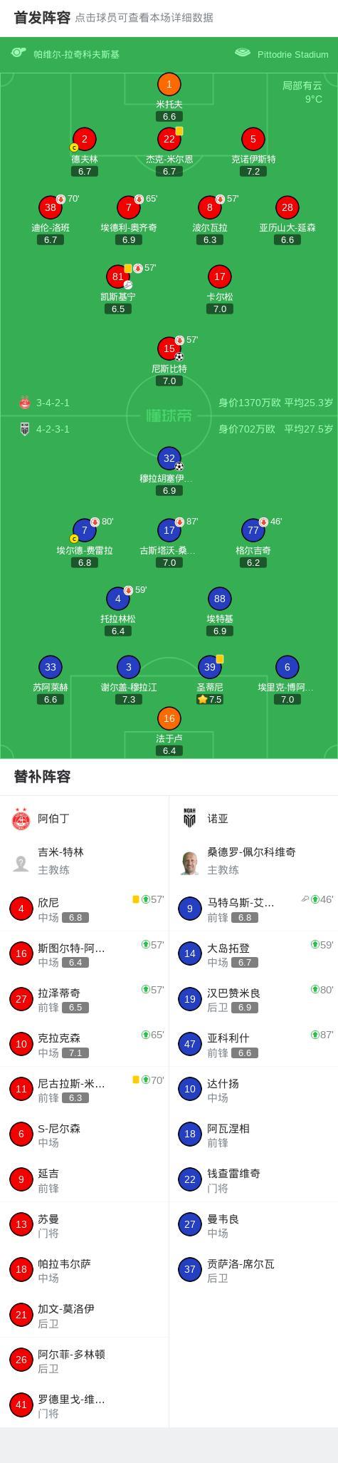 阿伯丁1-1諾亞,尼斯比特破僵,穆拉胡塞伊諾維奇救主