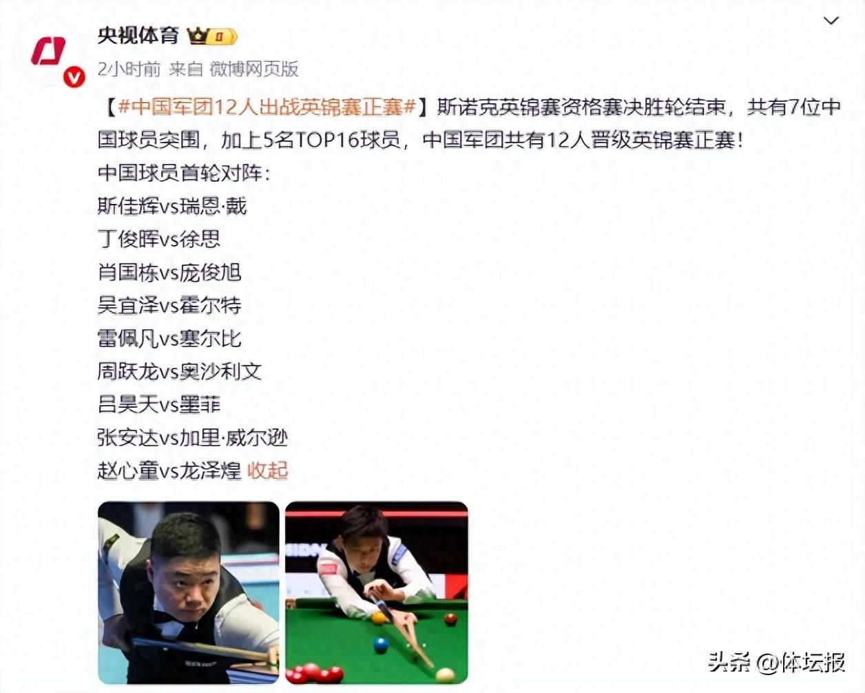 斯諾克 | 創歷史新高!12名中國選手晉級英錦賽正賽