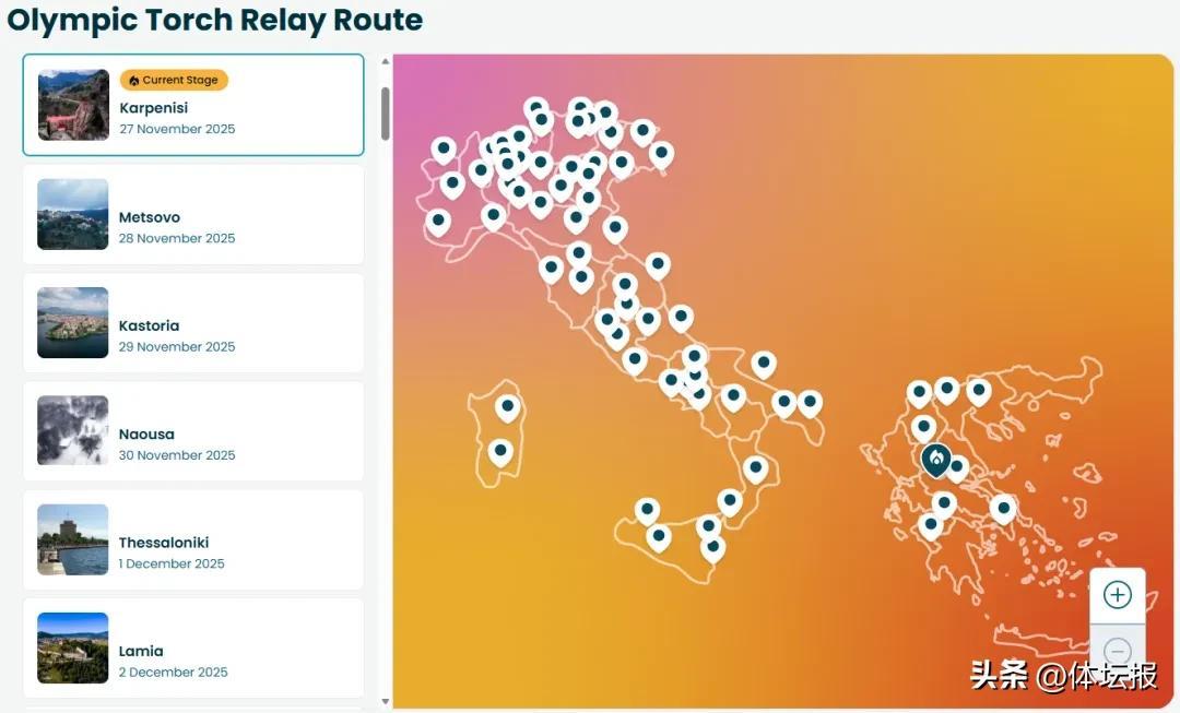 本屆冬奧會聖火火種採集儀式已經於11月26日在希臘的奧林匹亞考古博物館舉行完畢,目前聖火在希臘境內進行傳遞,並將於12月4日在雅典正式移交給米蘭冬奧會組委會。
