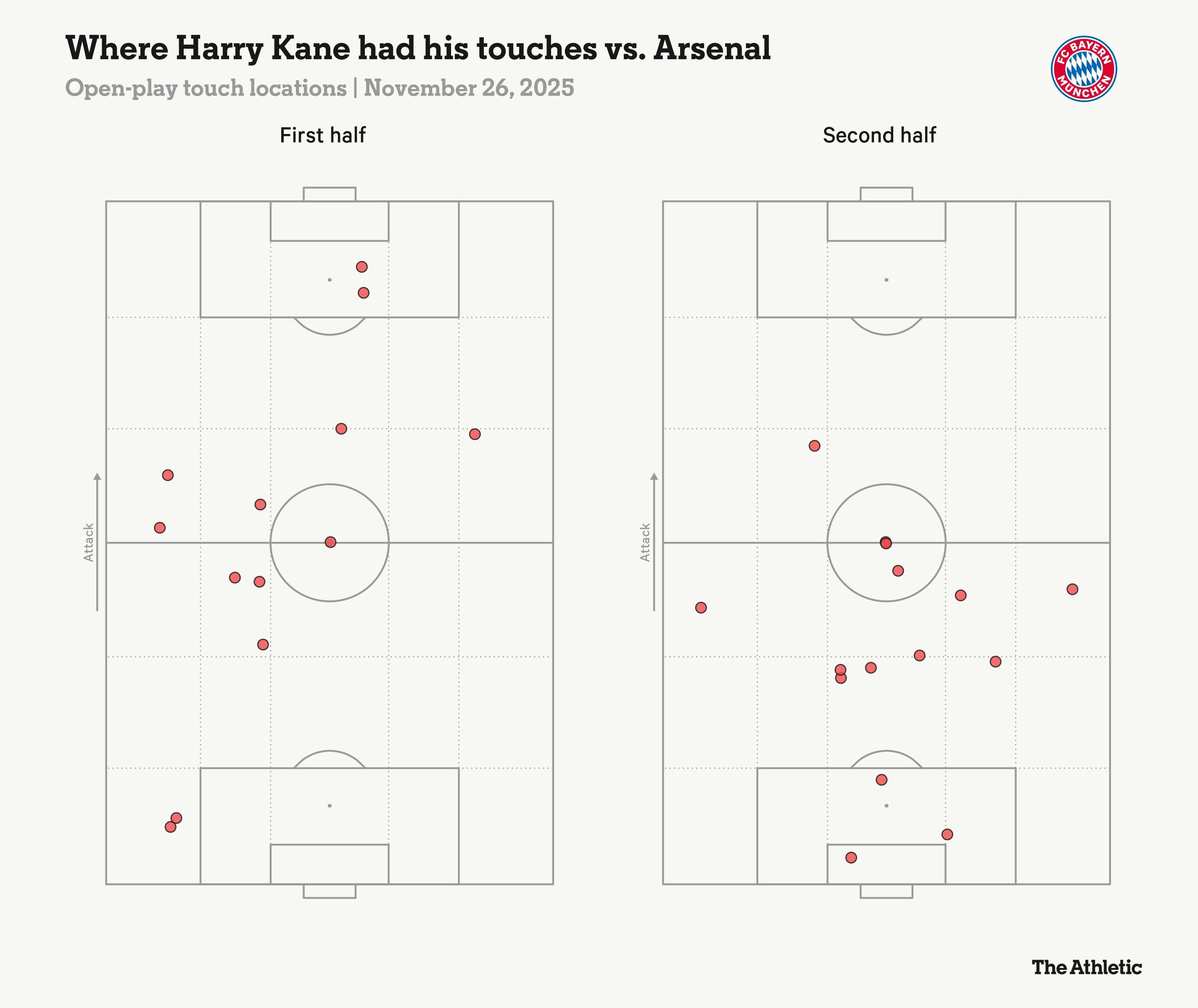 凱恩在進攻端參與度低,反映的是阿森納在無球狀態下計劃執行得當,而非專門針對他個人的特定戰術。