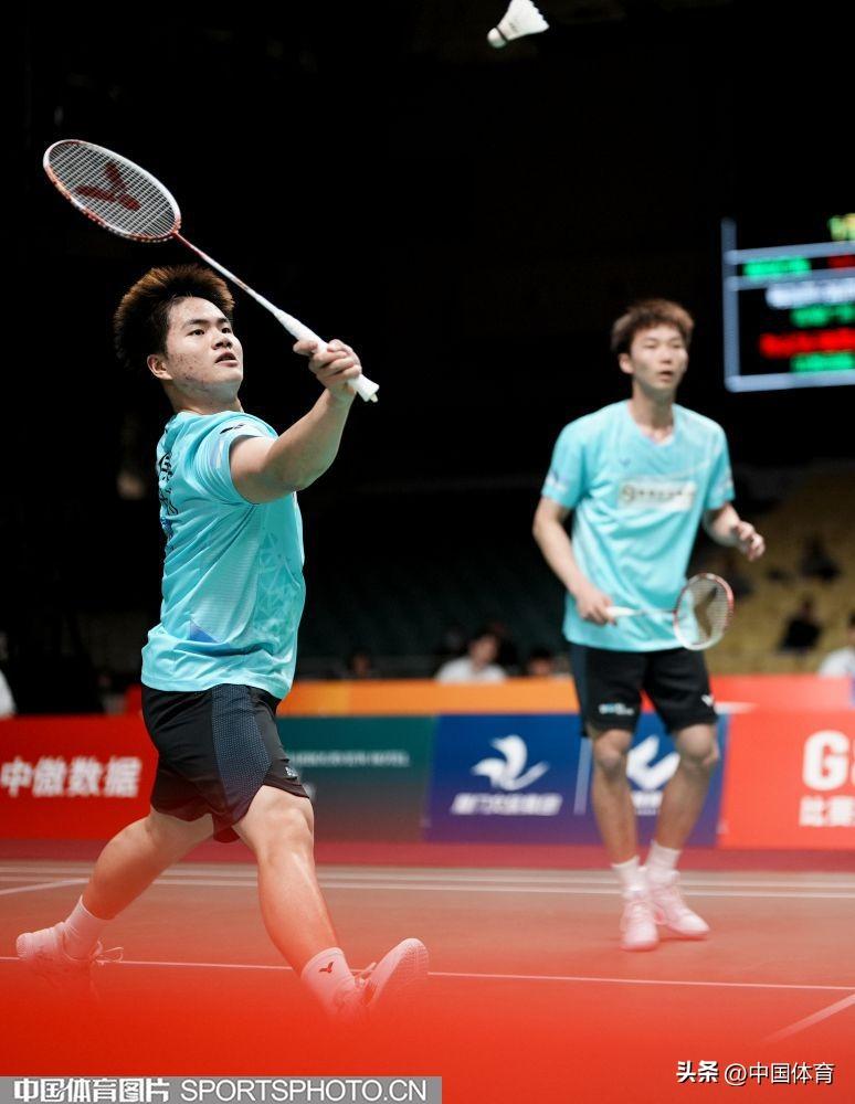 青島仁洲俱樂部選手梁偉鏗(左)/蔣振邦在比賽中