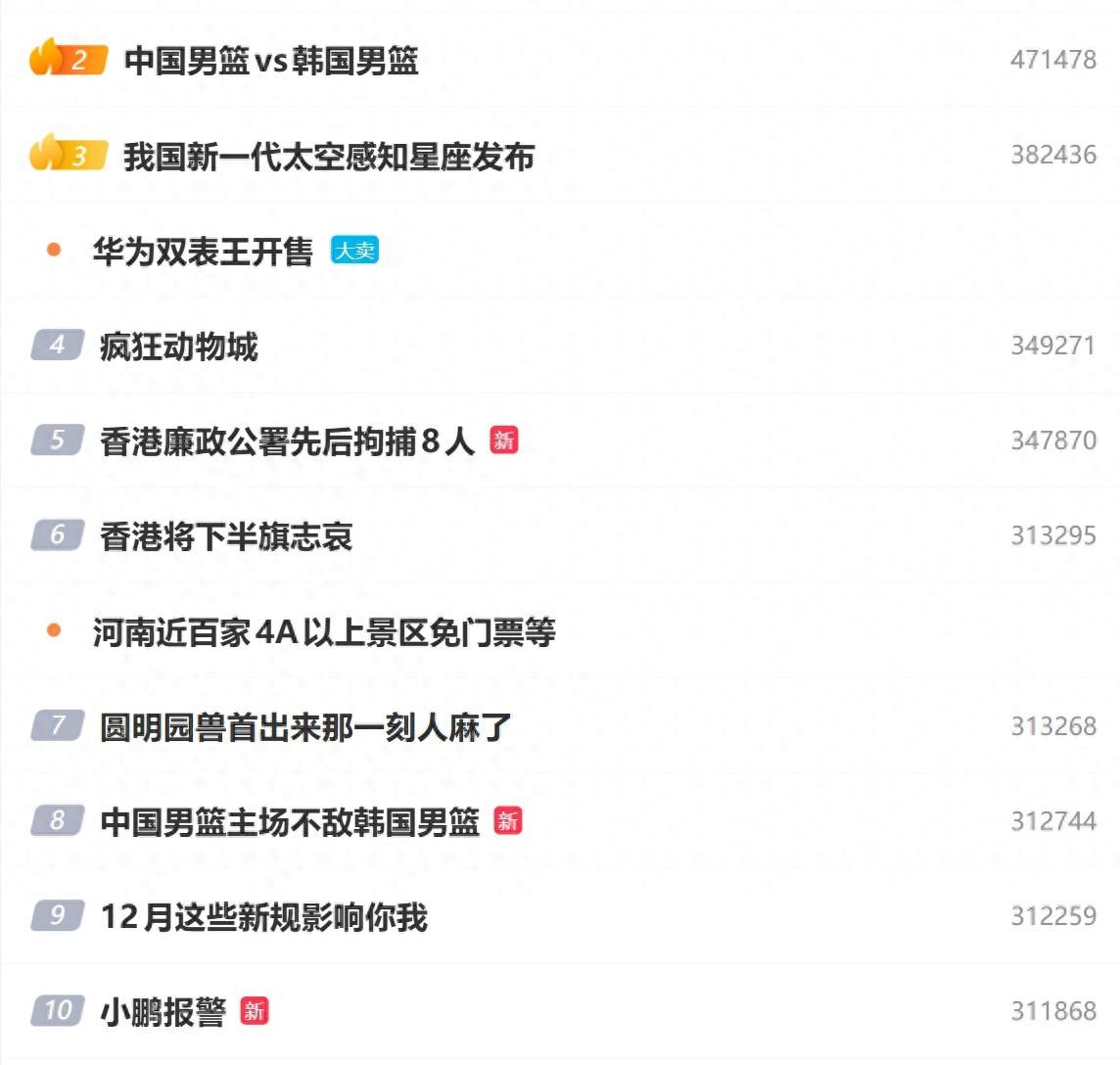 開門黑上熱搜,中韓男籃之戰的2個相關詞條進入微博熱搜前十