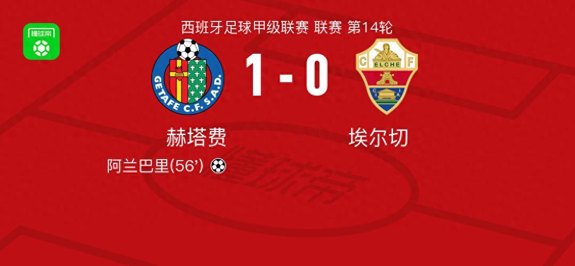 北京時間11月29日,西班牙足球甲級聯賽第14輪,赫塔費坐鎮主場迎戰埃爾切。比賽中,費梅尼亞送出助攻,阿蘭巴里破門得分,爲球隊打入制勝一球。憑藉此粒進球,赫塔費以1-0戰勝埃爾切,全取三分。