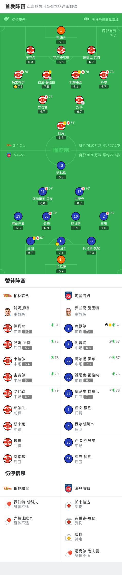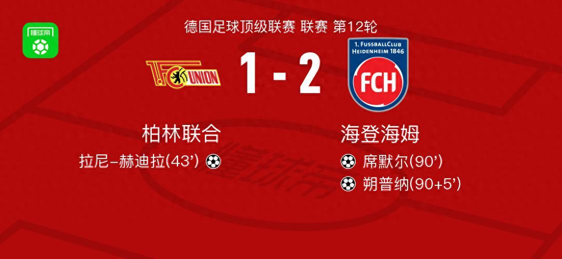 海登海姆2-1逆轉柏林聯合,朔普納、席默爾破門