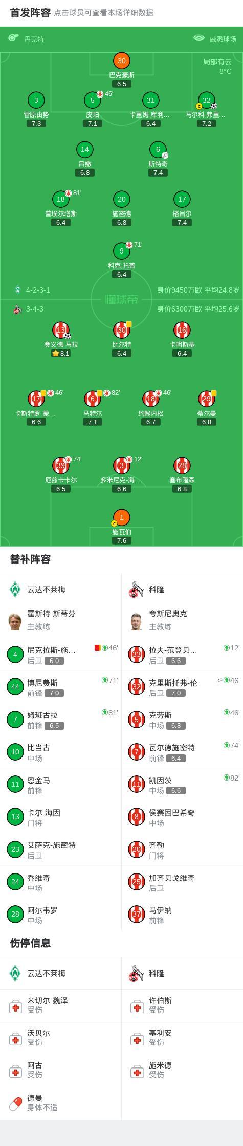 下半場補時第1分鐘,科隆球員克里斯托弗-倫助攻賽義德-馬拉打入一球。