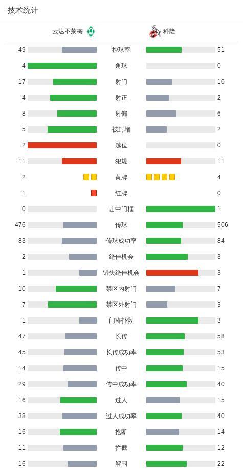 下半場補時第6分鐘,雲達不萊梅球隊尼克拉斯-施塔克喫到第二張黃牌。