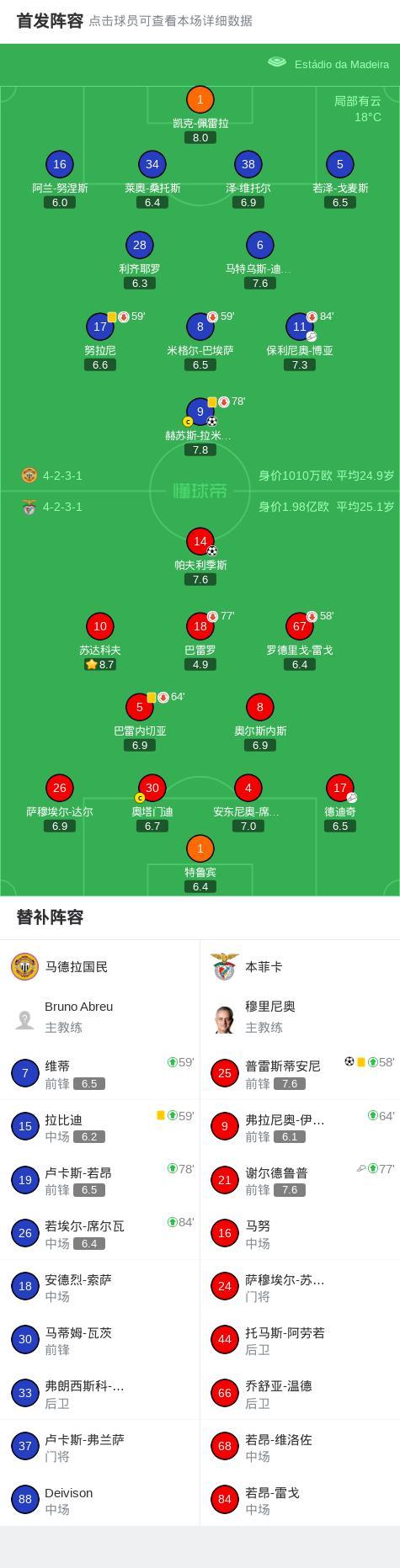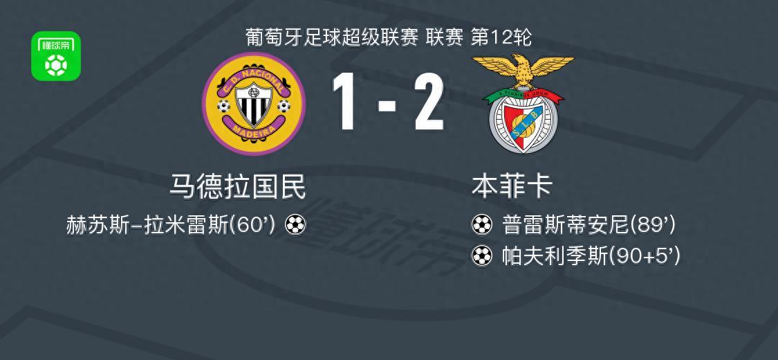 本菲卡2-1逆轉馬德拉國民,帕夫利季斯建功,普雷斯蒂安尼破門