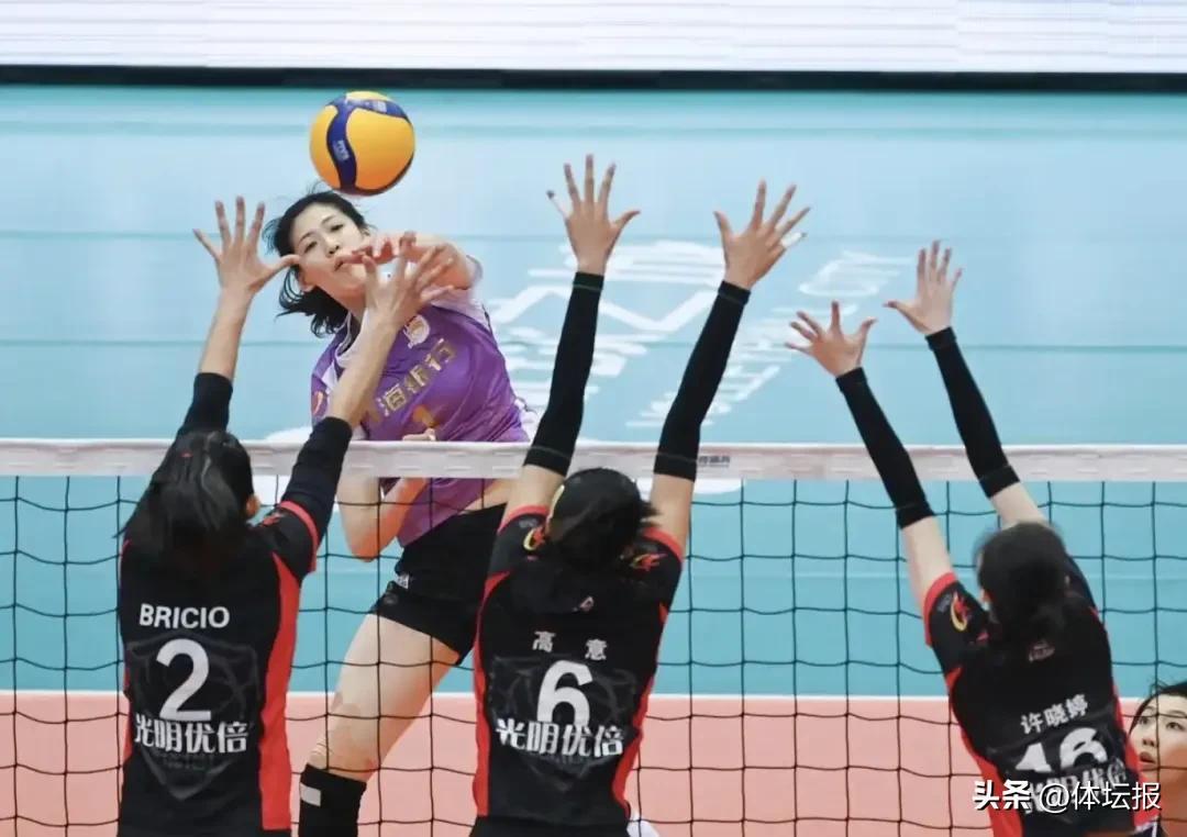 李盈瑩(左二)在比賽中扣球(資料圖)
