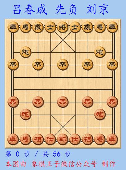 呂春成不察,瞬即反丟一炮,劉京得子,全速強進,黑戰至56手,以車雙炮馬對車馬炮多子致勝。