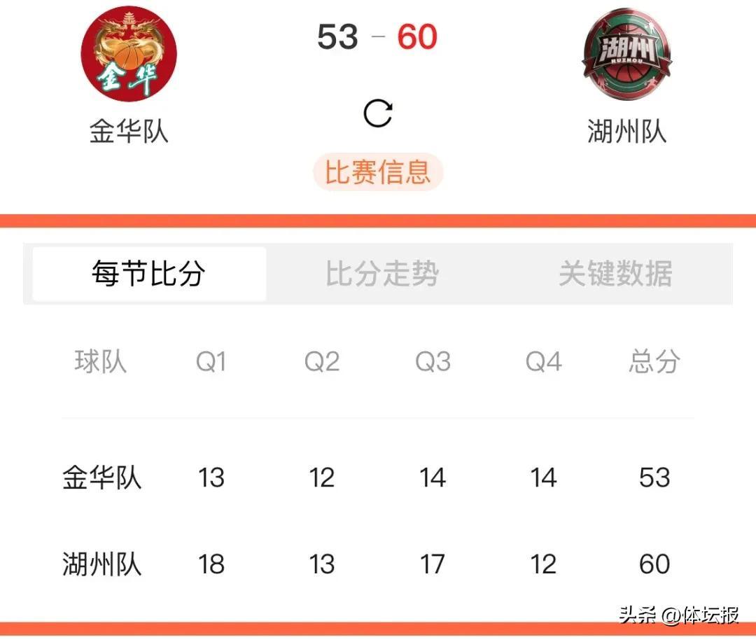 金華VS湖州53:60湖州勝!