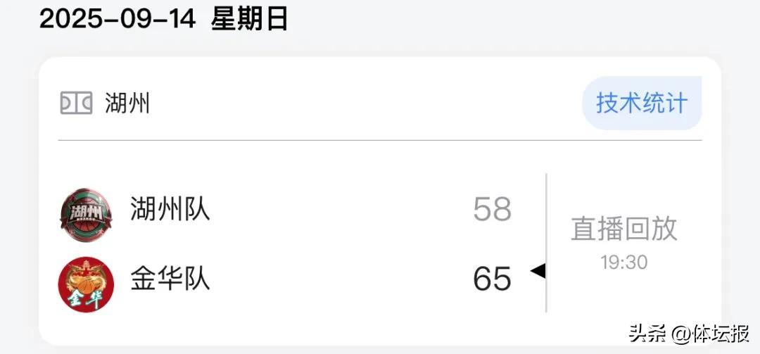 本場比賽後,金華隊的戰績爲7勝7負積21分,湖州隊的戰績爲6勝9負積21分。