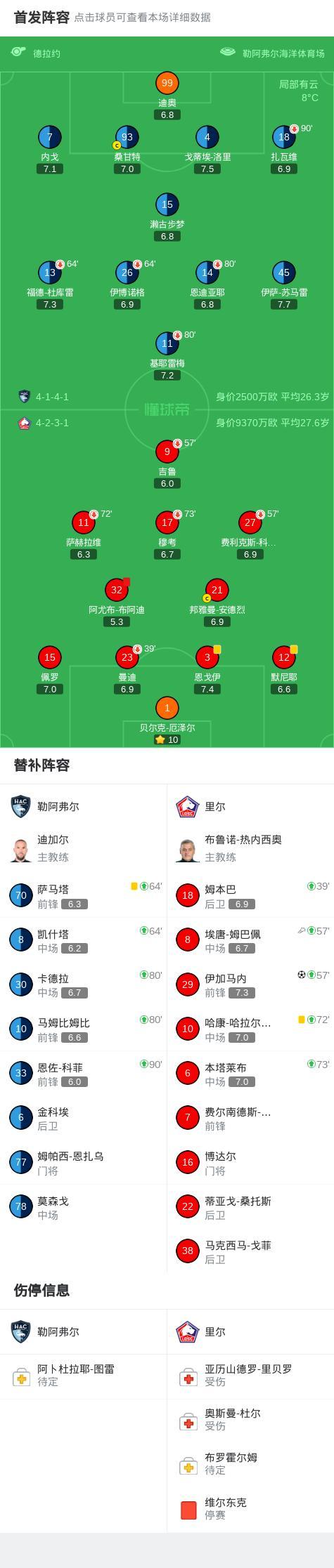 北京時間12月1日法國足球頂級聯賽 聯賽 第14輪,勒阿弗爾主場對陣里爾。里爾伊加馬內破門。最終比分勒阿弗爾 0-1 里爾。