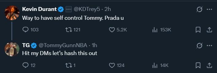 有網友對此次評選感到不滿,一網友轉發了BR的社媒,並配文寫道:“這絕對是有史以來最明顯的引戰帖了,哈哈。”隨後杜蘭特回覆了這名網友:“你真有自制力,爲你驕傲。”這名網友隨後回道:“私信我,我們好好聊聊。”