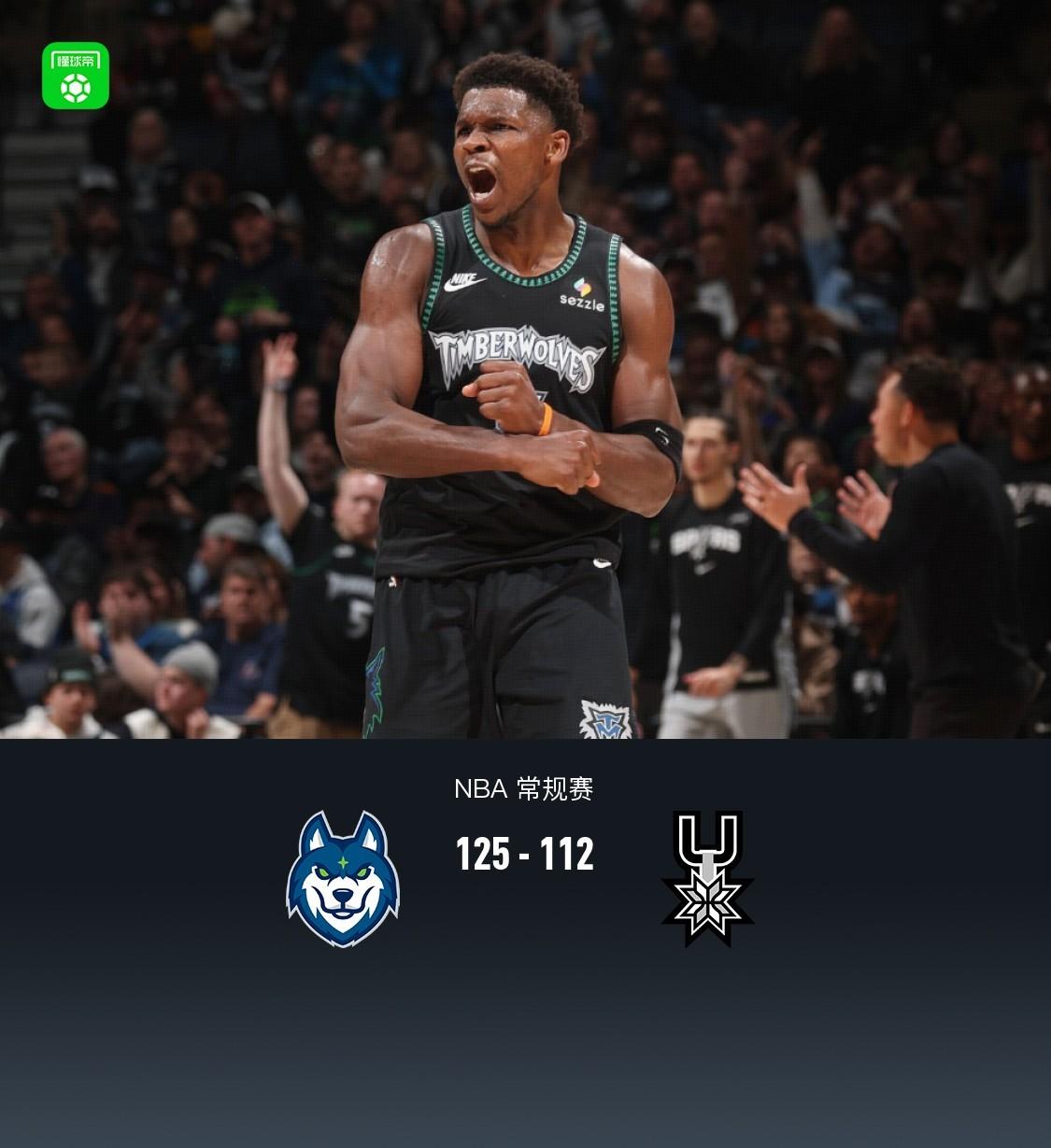 第四節森林狼迪文琴佐拿下13分,馬刺瓦塞爾拿下5分,最終森林狼125-112戰勝馬刺