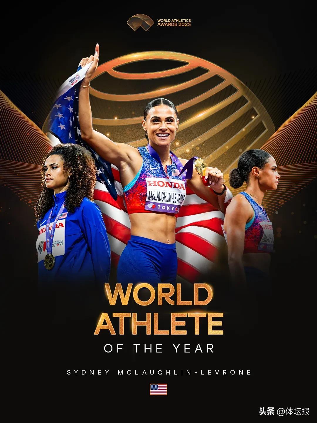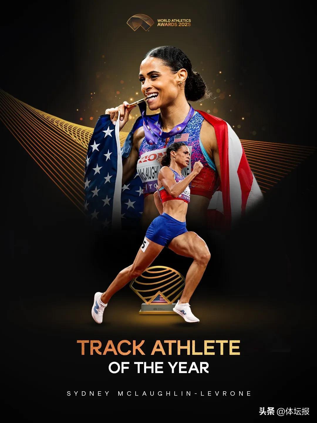 據世界田聯官微介紹,在過去兩年中,麥克勞克林在400米和400米欄賽場上均保持不敗,更是在2025年東京田徑世錦賽上首奪女子400米金牌,實現了跨項世界冠軍的偉業。在史上最偉大的一場女子400米比賽中,麥克勞克林以47秒78打破世錦賽紀錄奪冠,跑出了歷史第二好成績,隨後她又獲得了女子4x400米接力金牌。這是麥克勞克林生涯第二次獲得年度最佳女運動員,此前她曾在2022年當選。