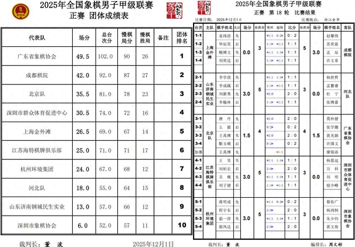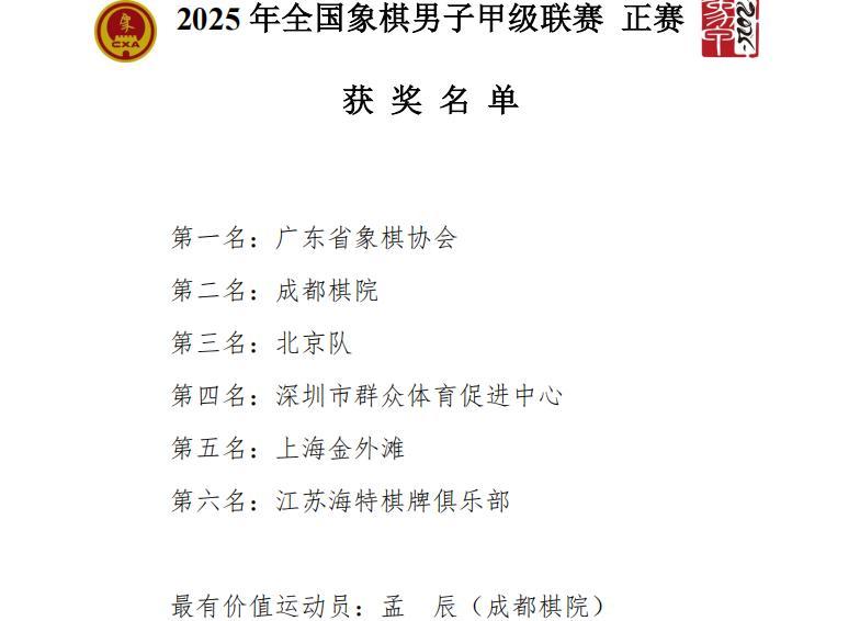 2025年全國象棋男子甲級聯賽的大戰,在浙江金華盛大收官,火線落幕,冠軍、射手王和各項排位、名次榮耀出爐,全線產生。