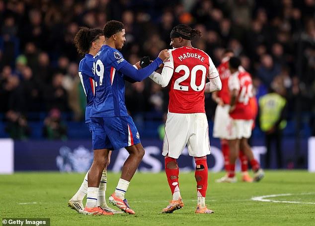 馬杜埃凱從切爾西球員那裏得到的冷遇似乎僅限於比賽本身。阿森納球星在終場哨響後被切爾西隊長里斯-詹姆斯擁抱。古斯托和韋斯利-福法納等藍軍球員在激烈的倫敦德比結束後與馬杜埃凱打招呼。