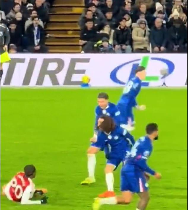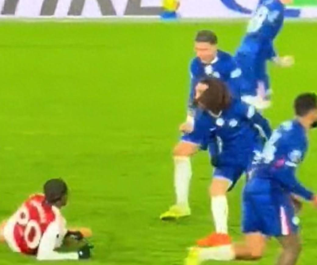 在一次場上事件中,恩佐-費爾南德斯在切爾西禁區邊緣成功搶斷馬杜埃凱,導致後者倒地。