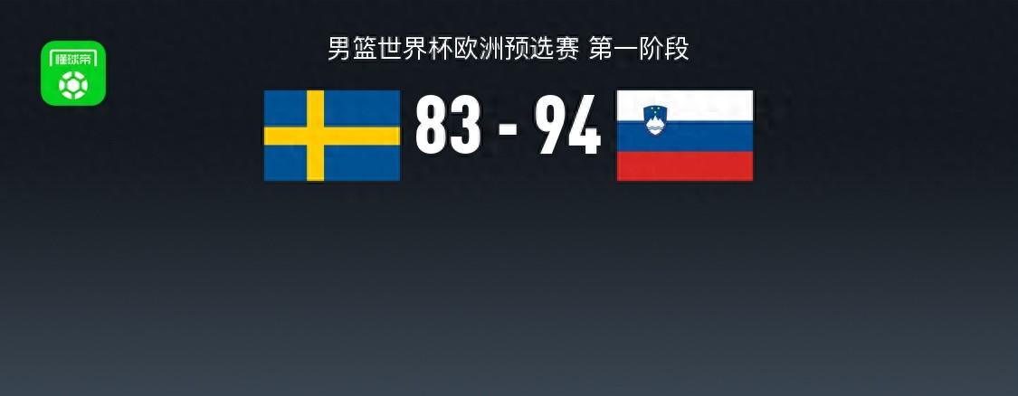 北京時間12月2日男籃世界盃歐洲預選賽 第一階段,瑞典男籃對陣斯洛文尼亞男籃。半場瑞典男籃42-49斯洛文尼亞男籃,最終瑞典男籃83-94斯洛文尼亞男籃。瑞典男籃赫根遜34分1板6助,皮埃爾-漢普頓16分4板;斯洛文尼亞男籃森馬16分5助,格雷戈格拉斯15分1板3助。