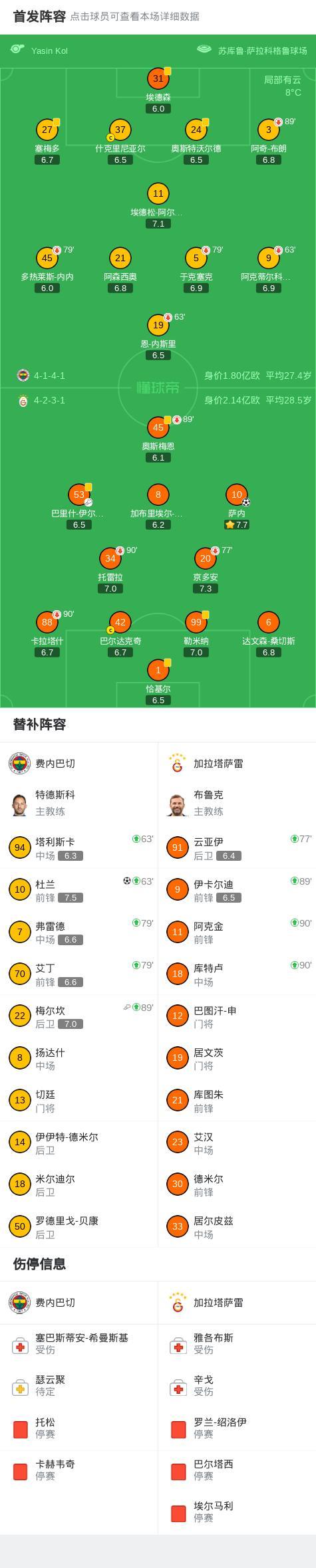 北京時間12月2日,土耳其足球超級聯賽第14輪展開較量,費內巴切坐鎮主場迎戰加拉塔薩雷。比賽中,加拉塔薩雷率先打破僵局,巴里什-伊爾馬茲送出助攻,薩內成功破門。此後雙方均未能改寫比分,直至比賽傷停補時階段,梅爾坎送出關鍵傳球,杜蘭抓住機會完成絕平,最終全場結束,費內巴切與加拉塔薩雷以1比1握手言和。
