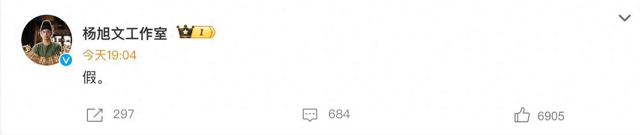 楊旭文工作室在晚間闢謠,只用了一個字“假”。