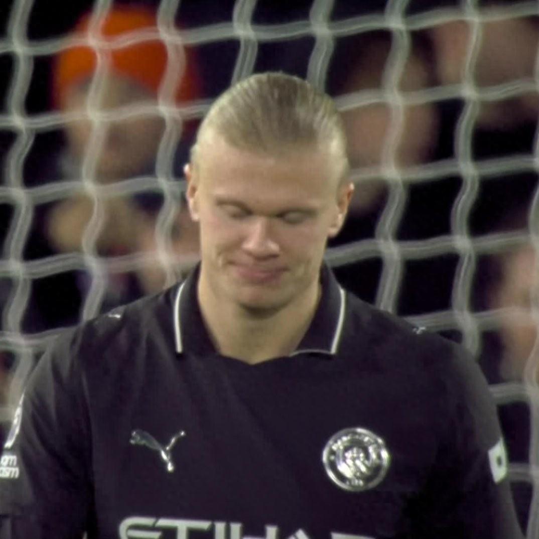 比賽第6分鐘,哈蘭德帶球突入禁區射門擊中立柱彈出。這位曼城前鋒仍在等待英超生涯第100球。