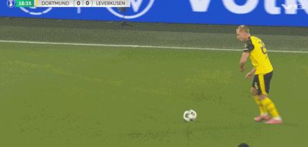 上半場進行到接近二十分鐘,多特中場球員丘庫埃梅卡在禁區內被勒沃庫森球員誇安薩拉拽,裁判沒有判罰點球。