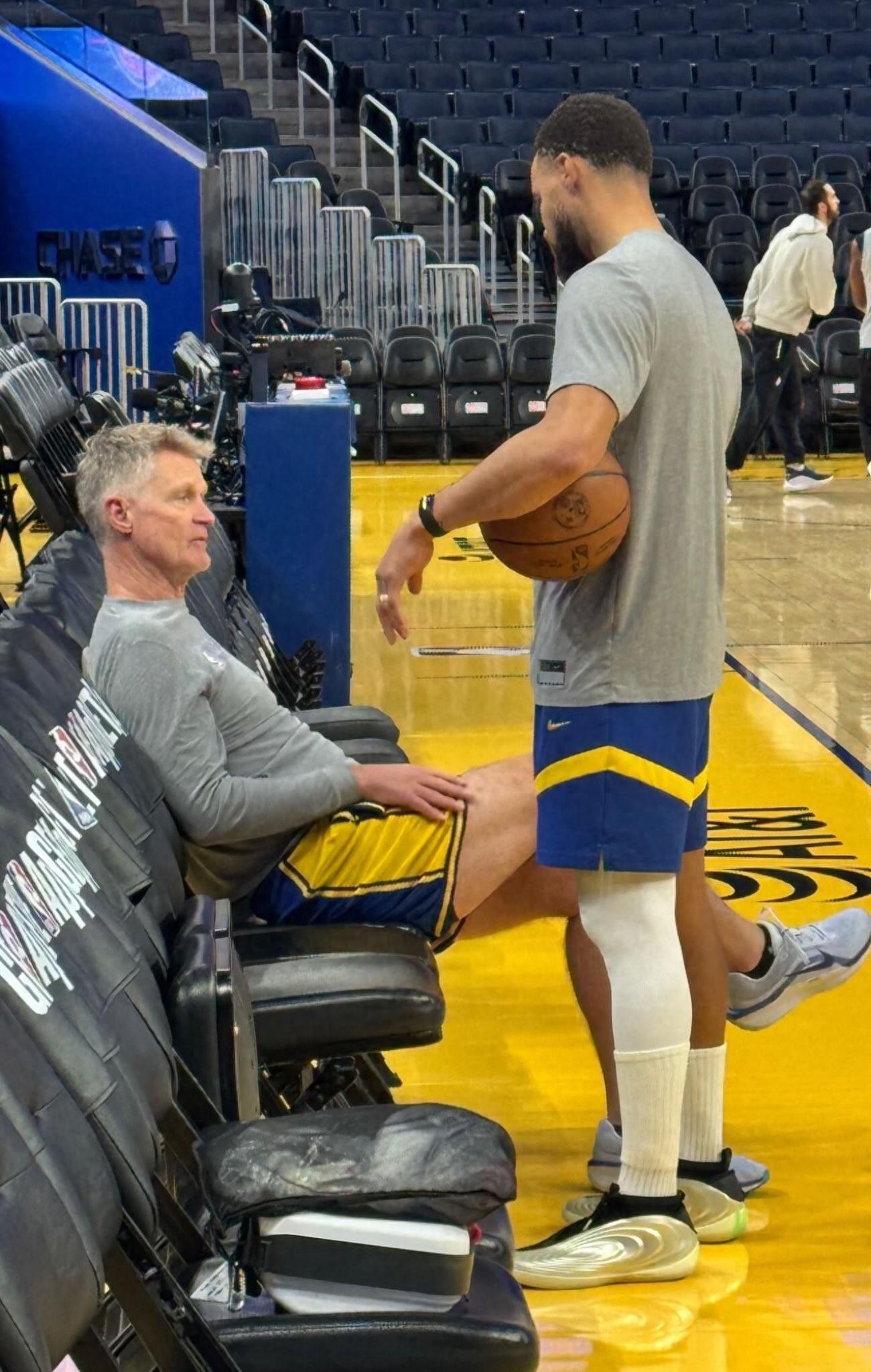 據美國記者現場拍攝照片,庫裏在賽前熱身時上腳了哈登10代戰靴,據報道,這也是庫裏職業生涯中首次上腳阿迪達斯品牌的球鞋,此前他曾先後簽約耐克和安德瑪,在與安德瑪解約後曾上腳耐克、李寧、銳步等品牌球鞋。