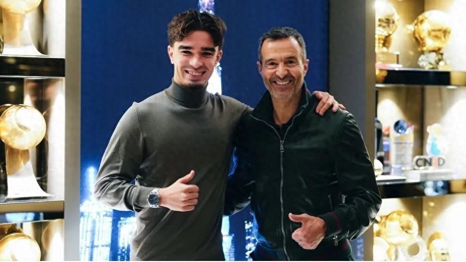 這位波爾圖新星馬特烏斯-米德在父母陪同下與門德斯會面併合影,門德斯已經成爲他的經紀人。