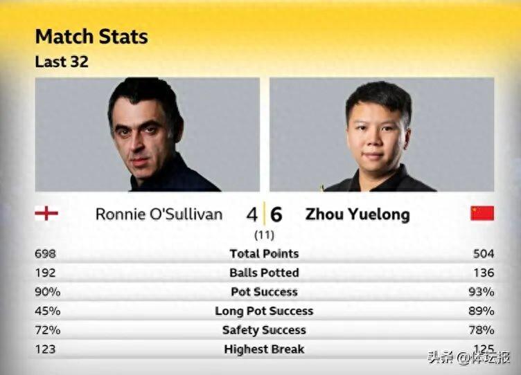 休息歸來,周躍龍先是在第五局完成逆轉,又在第七局1分再度逆轉,第八局周躍龍單杆125分拿到賽點,第九局奧沙利文拒絕逆轉挽救一個賽點,第10局周躍龍準進綠球拿下比賽!最終周躍龍6-4戰勝奧沙利文。