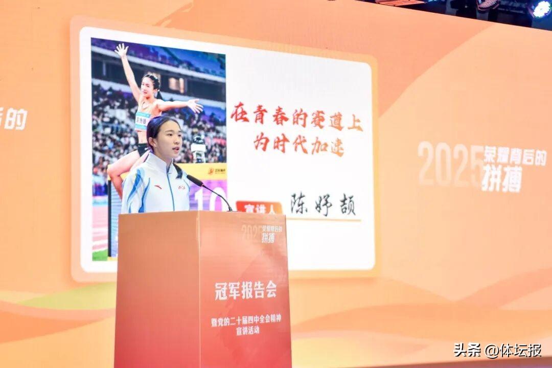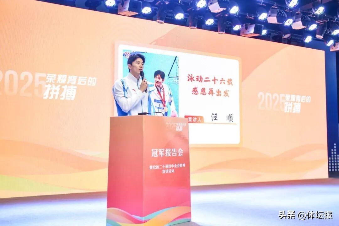 活動現場,汪順、陳妤頡、王昶分別回顧了訓練場上汗水浸透衣背的堅守、競技場上頂住壓力的突破、領獎臺上拼搏的榮耀,用“日復一日的重複打磨”“絕境中不放棄”的親身經歷作冠軍報告。