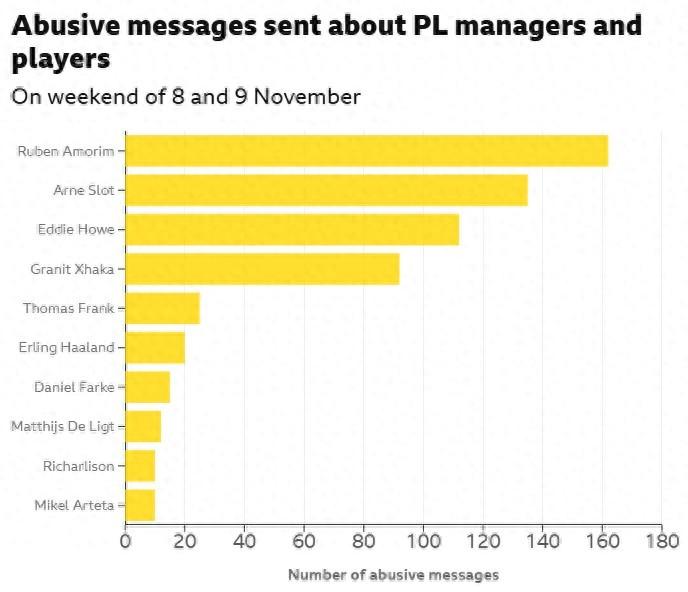 根據英國媒體的最新報道,在英超第11輪比賽期間,阿莫林、斯洛特和埃迪-豪是被攻擊最多的教練。