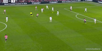 第38分鐘,維尼修斯單刀打門,烏奈-西蒙將球撲出