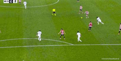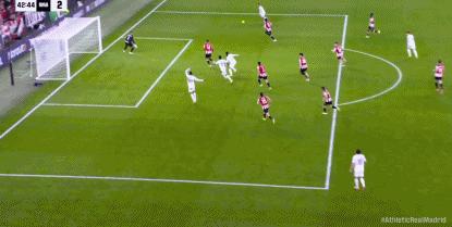 第42分鐘,皇馬打出行雲流水配合,姆巴佩頭球擺渡助攻卡馬文加破門,2-0!