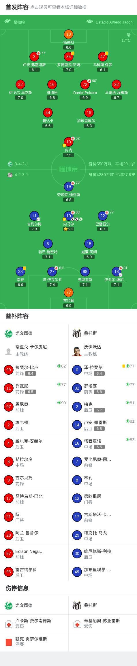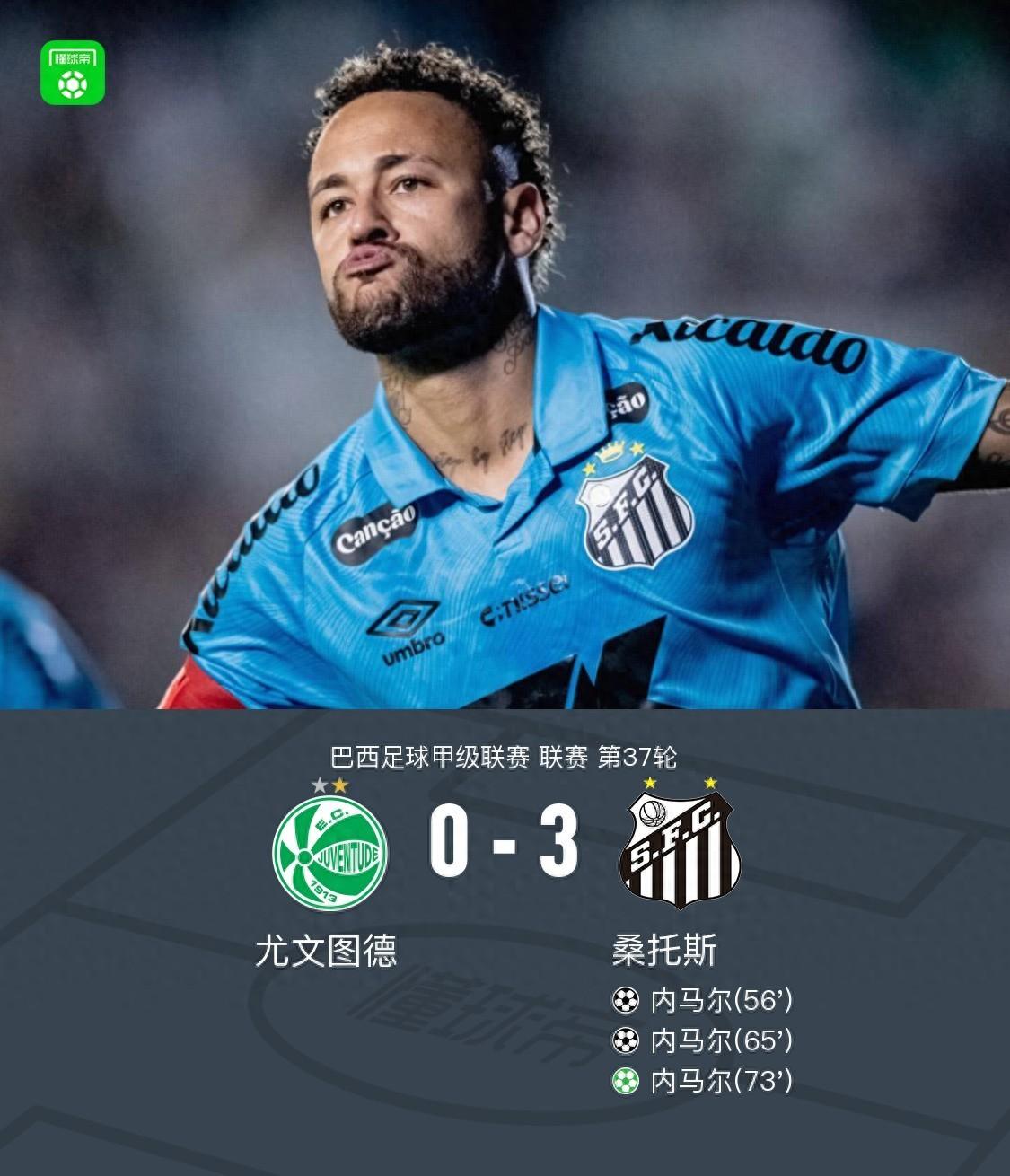 桑托斯3-0完勝尤文圖德領先降級區2分,內馬爾帽子戲法