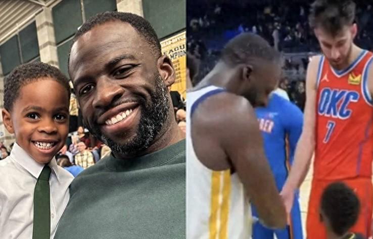追夢8歲的兒子小德雷蒙德-格林這場比賽來到替補席上觀戰。談到此事,追夢說道:“是的,感覺很棒。如果我本來想在替補席上說些什麼,他的存在會讓我閉嘴,他讓我有所收斂。我知道他在看着我。但這感覺很棒。”