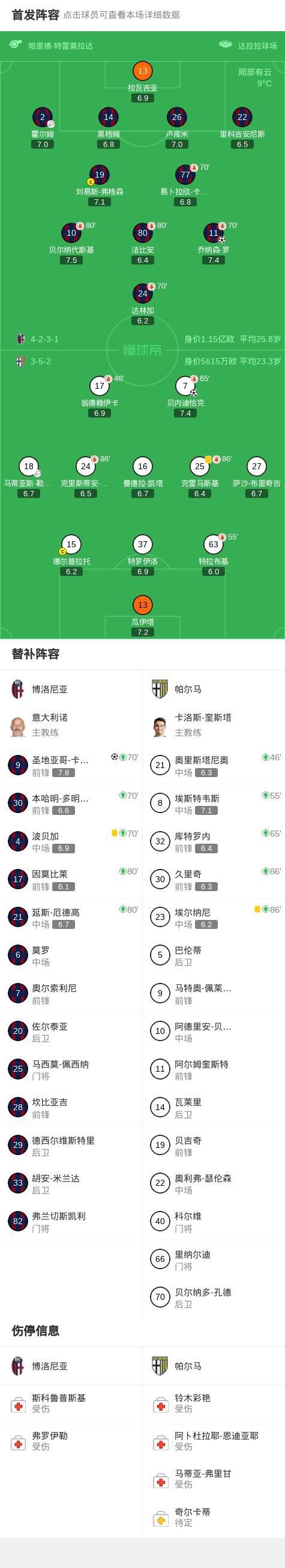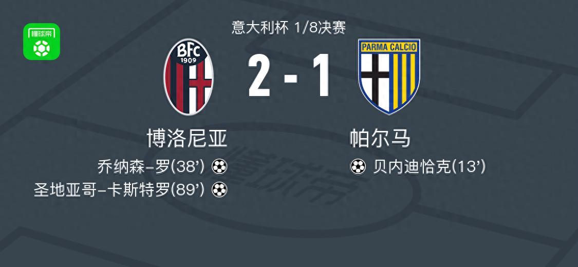 北京時間12月5日意大利杯 1/8決賽,博洛尼亞對陣帕爾馬。博洛尼亞喬納森-羅破門,聖地亞哥-卡斯特羅破門。帕爾馬貝內迪恰克破門。最終比分博洛尼亞 2-1 帕爾馬。