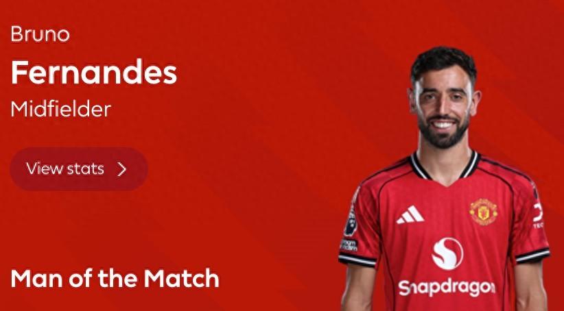 北京時間12月5日,在英超第14輪的比賽中,曼聯在主場1-1戰平西漢姆聯,賽後此戰首發打滿全場的布魯諾-費爾南德斯被球迷投票選爲了本場的最佳球員。