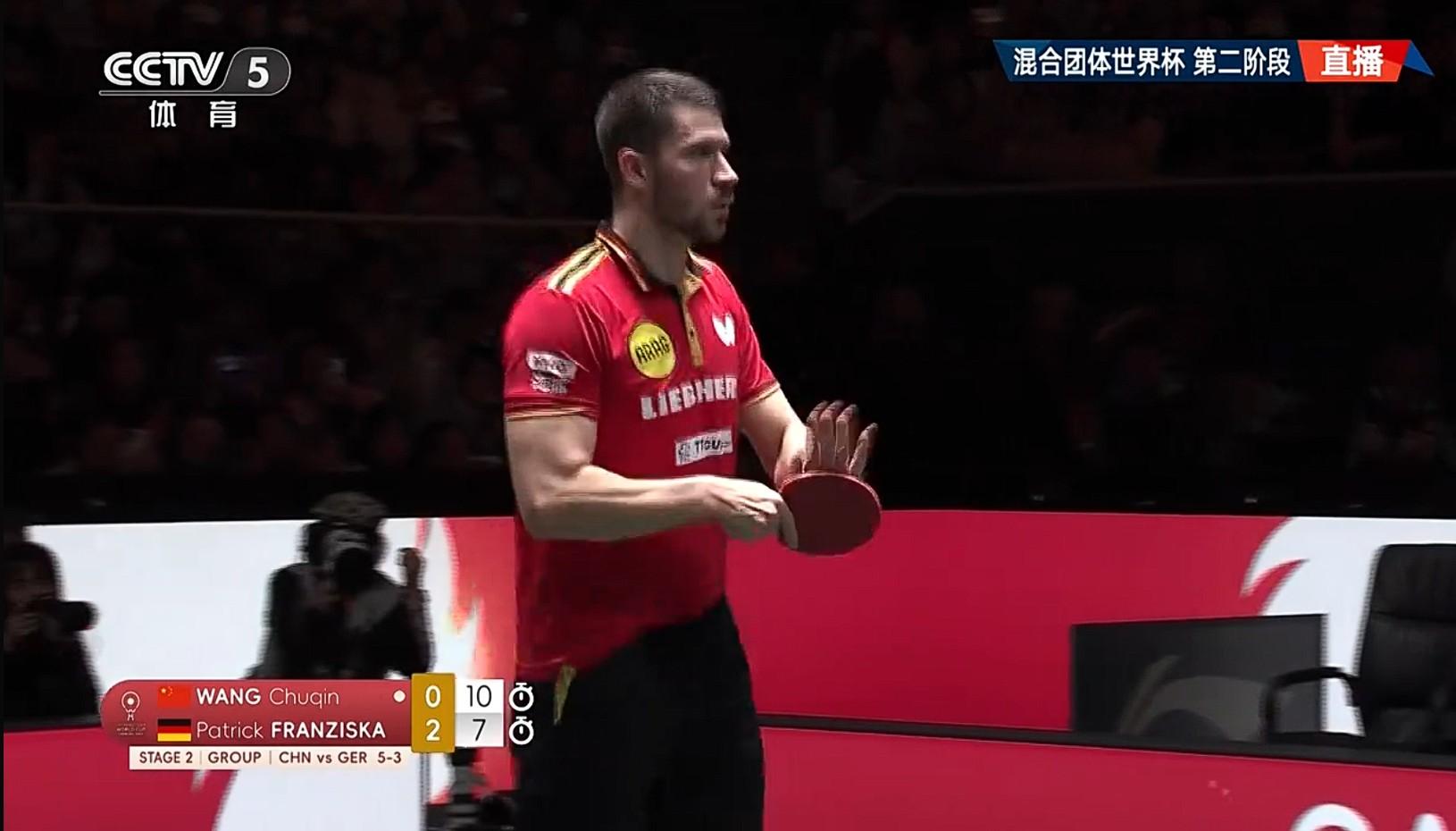 乒乓球混團世界盃:王楚欽1-2弗朗西斯卡,中國6-3德國
