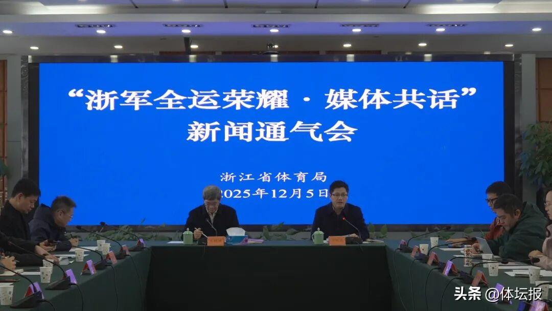 12月5日,省體育局召開“浙軍全運榮耀・媒體共話”新聞通氣會,揭開第十五屆全運會榮耀背後的數字與故事。