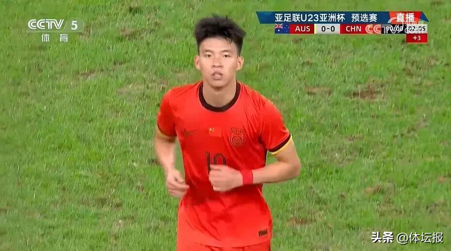 王鈺棟在U23亞洲盃預選賽的比賽中(央視直播截圖)