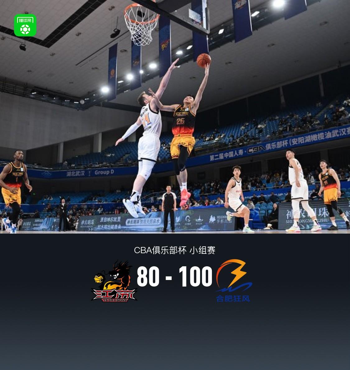 北京時間12月5日CBA俱樂部杯 小組賽,江蘇肯帝亞對陣合肥狂風。半場江蘇33-51合肥狂風,最終江蘇80-100合肥狂風。江蘇肯帝亞羅伯-愛德華茲16分4板2助,龐崢麟16分2板6助;合肥狂風迪米特里奧斯-阿格拉瓦尼斯25分8板2助,杰倫-哈德森23分11板3助。