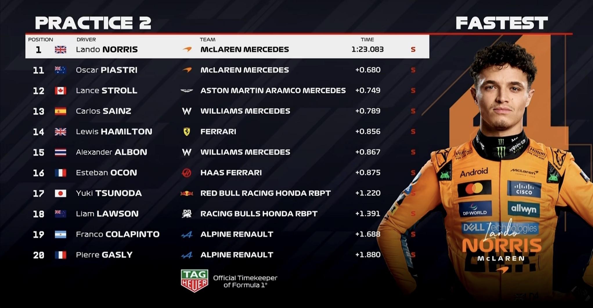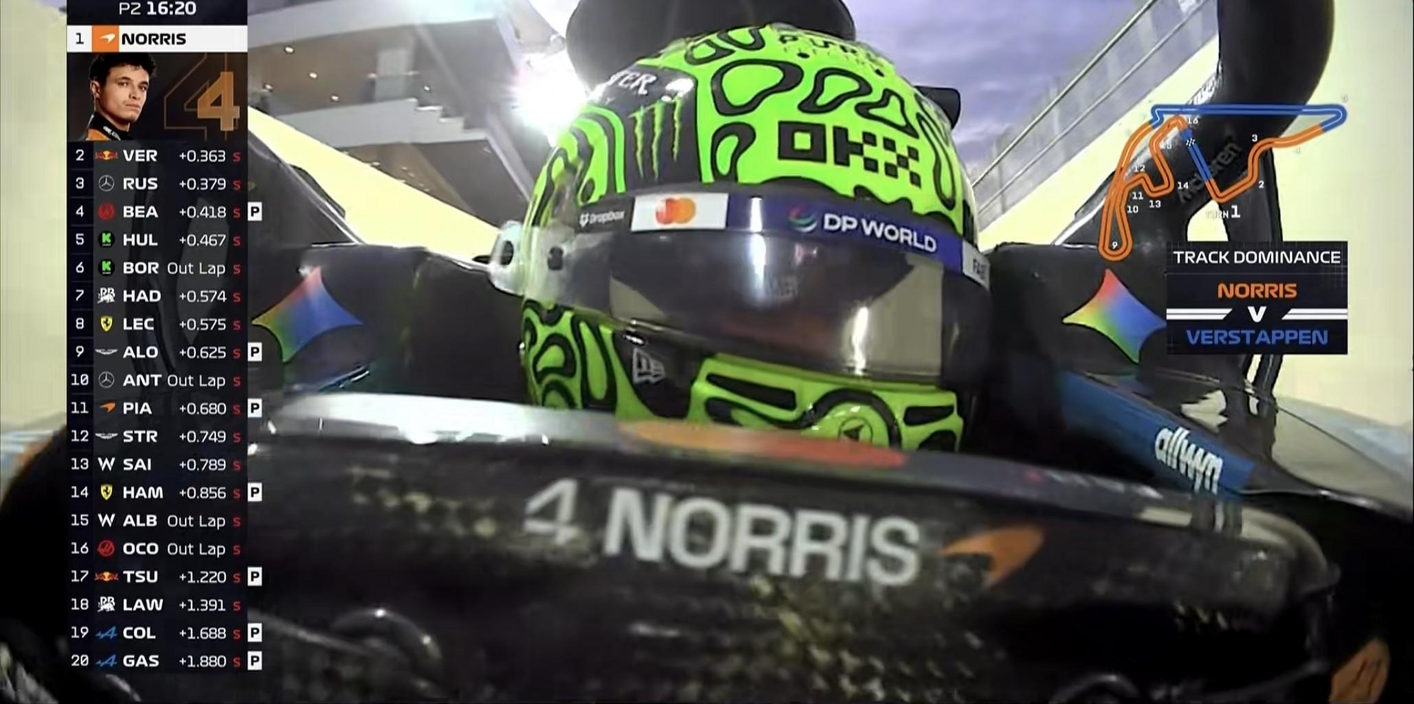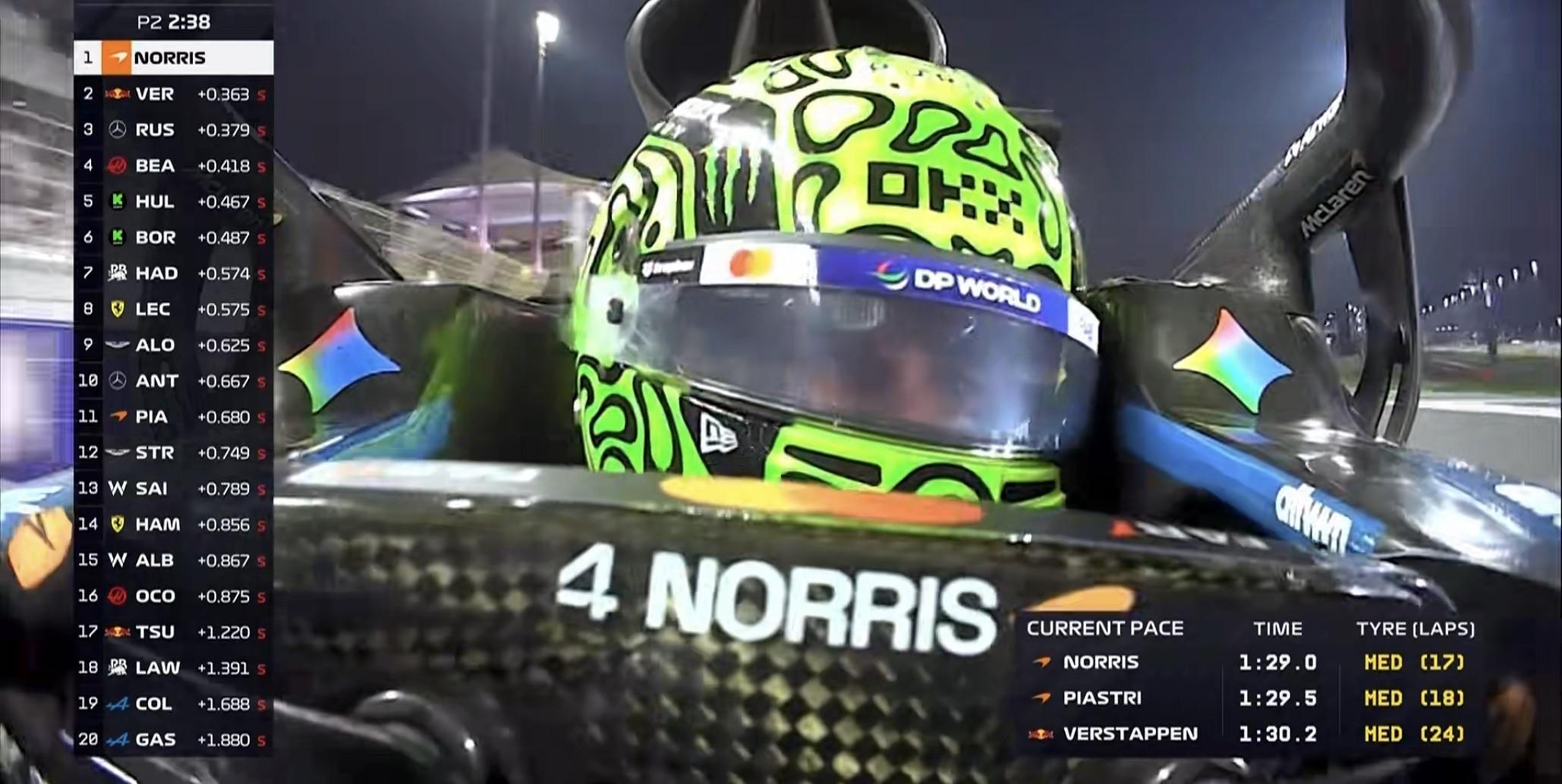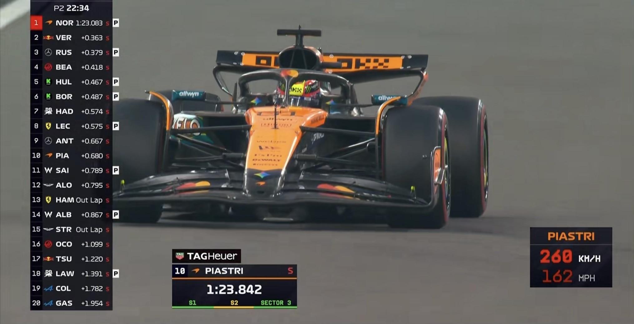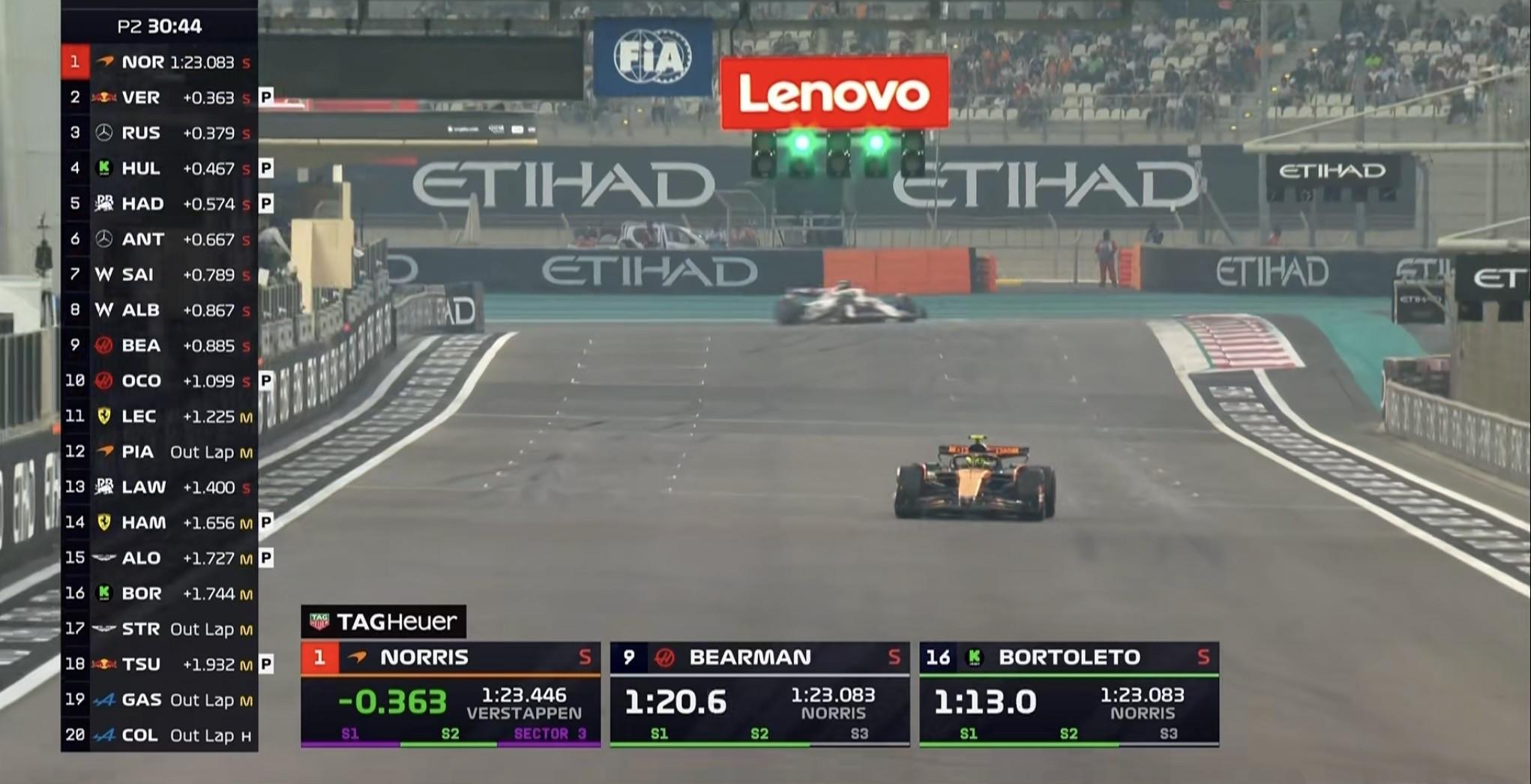 F1阿布扎比站二練:諾里斯領跑,維斯塔潘P2,皮亞斯特里P11