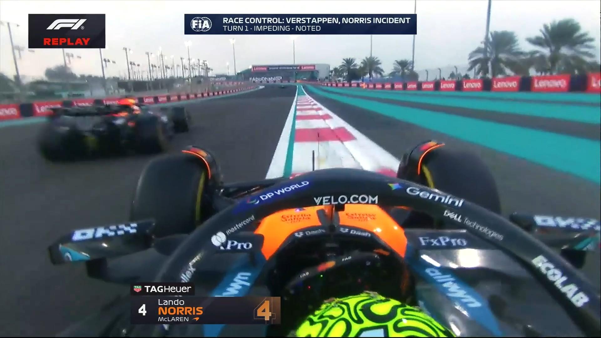 諾里斯險些追尾維斯塔潘,GP誤認爲前者並不處在飛馳圈中,從而導致了這次“擦肩而過”;