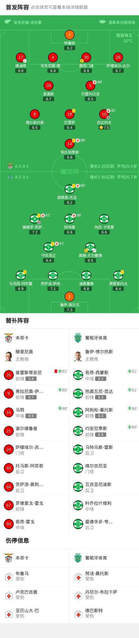 第12分鐘,尤爾曼德搶斷後助攻貢薩爾維斯破門,葡萄牙體育1-0本菲卡