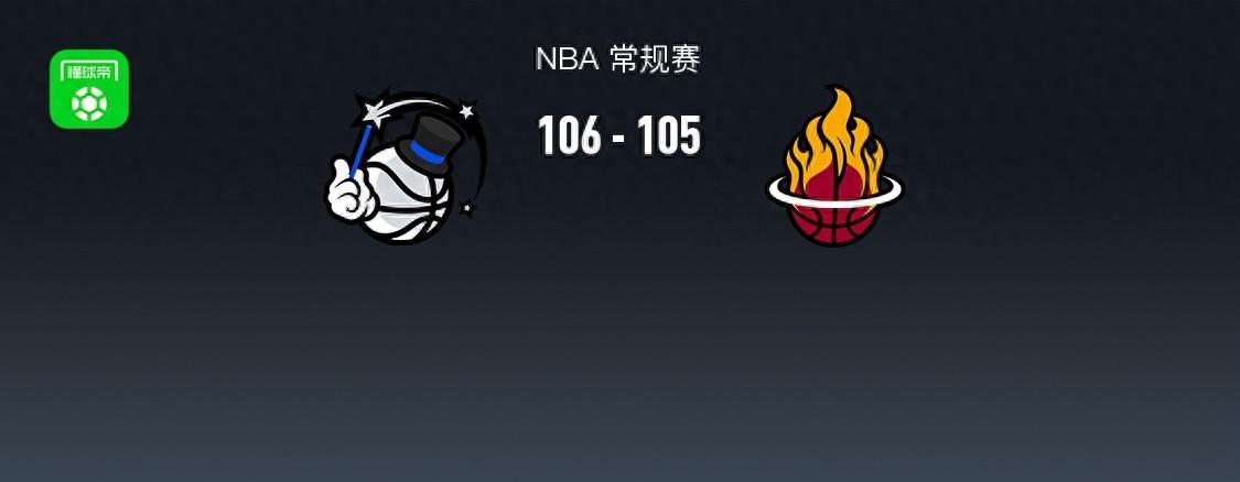 第四節魔術弗蘭茨-瓦格納拿下9分,熱火諾曼-鮑威爾拿下9分,最終魔術106-105戰勝熱火