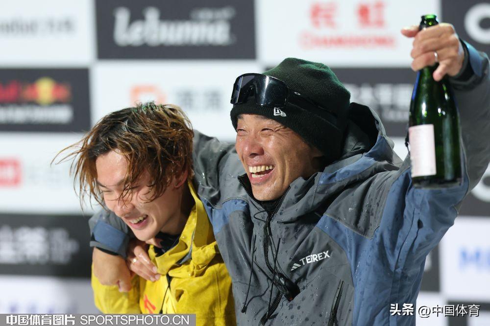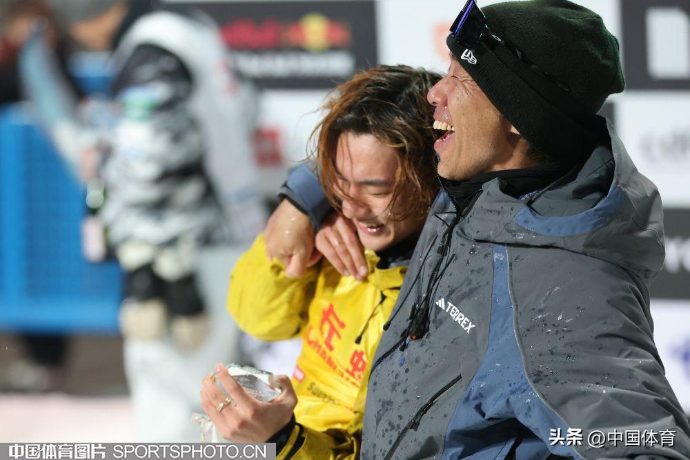 蘇翊鳴和教練佐藤康弘在頒獎儀式上